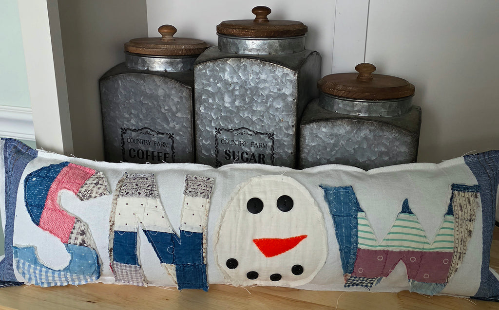 Antique quilt SNOW Snowman Pillow
