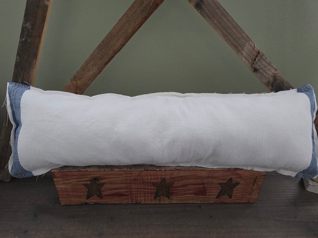 Handmade pillow made from an antique quilt and vintage tea towel.